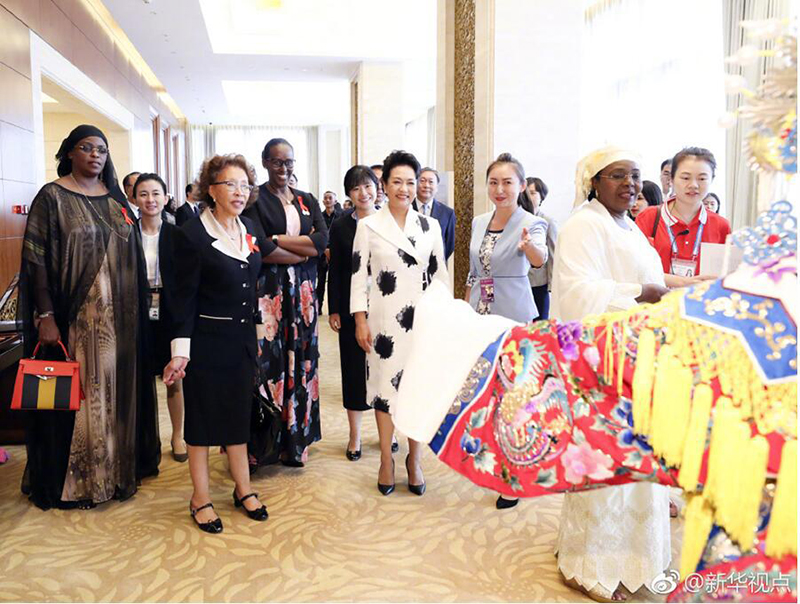 2018年9月4日,国家主席习近平夫人彭丽媛4日在钓鱼台国宾馆芳华苑出席“中非携手抗艾 共享美好未来”主题会议并发表致辞,与来华参加中非合作论坛北京峰会的37位非洲国家元首、政府首脑夫人共同发布《中非艾滋病防控主题会议联合倡议》。会后,彭丽媛与外方嘉宾共同欣赏了中国非物质文化遗产展示。
